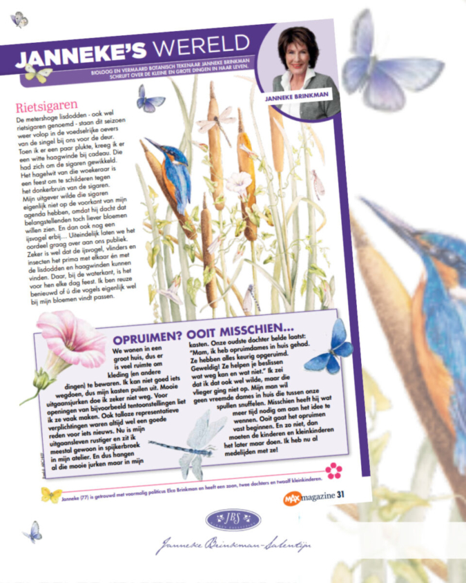In mijn nieuwste Janneke’s Wereld in MAX Magazine nr. 43 schrijft Janneke over de rietsigaren die nu weer volop langs de oevers staan. Zo mooi in contrast met het hagelwit van de haagwinde, dat het haast vanzelf een schilderij wordt. 🎨✨